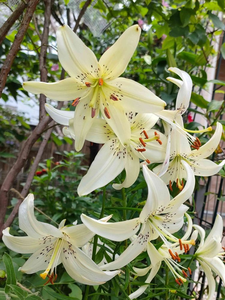 先日ピンク系のシャンデリアリリーが咲いたのですが、今度はクリーム色✨