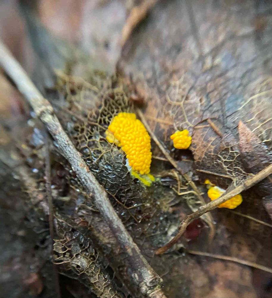 おぉ〜ネットには粘菌の見分け方まとめが見当たらなくて、黄色だけじゃ分からなくて。