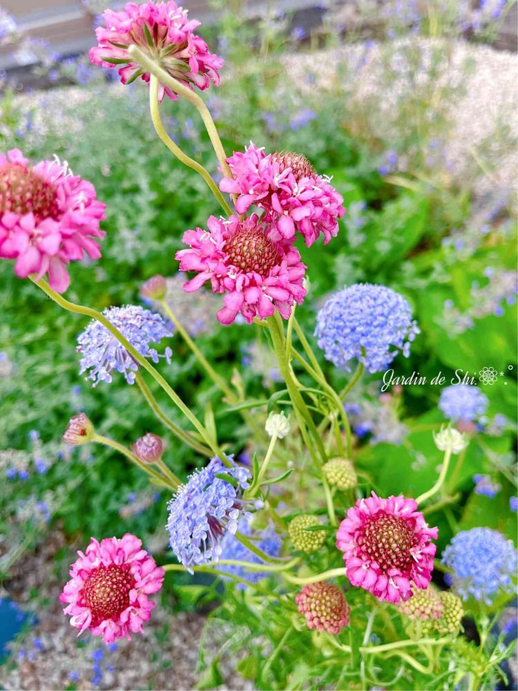 可愛い💗🩵組み合わせスカビオサも種まきなんですかぁ〜Shi.815さんお上手👏🏻✨たくさん咲いていても涼やかに見えますね💗🩵✨