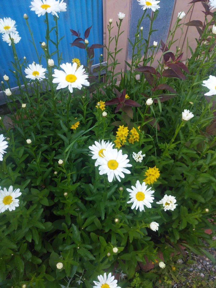 レウカンセマムデイジーメイが随分賑やかに咲いています。所々にリキシマが色挿しに咲いてます🤣