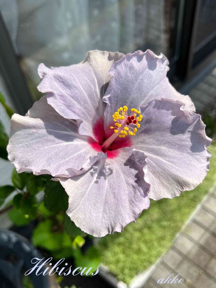 ベランダで、青系のハイビスカス ケイト咲きました🩵