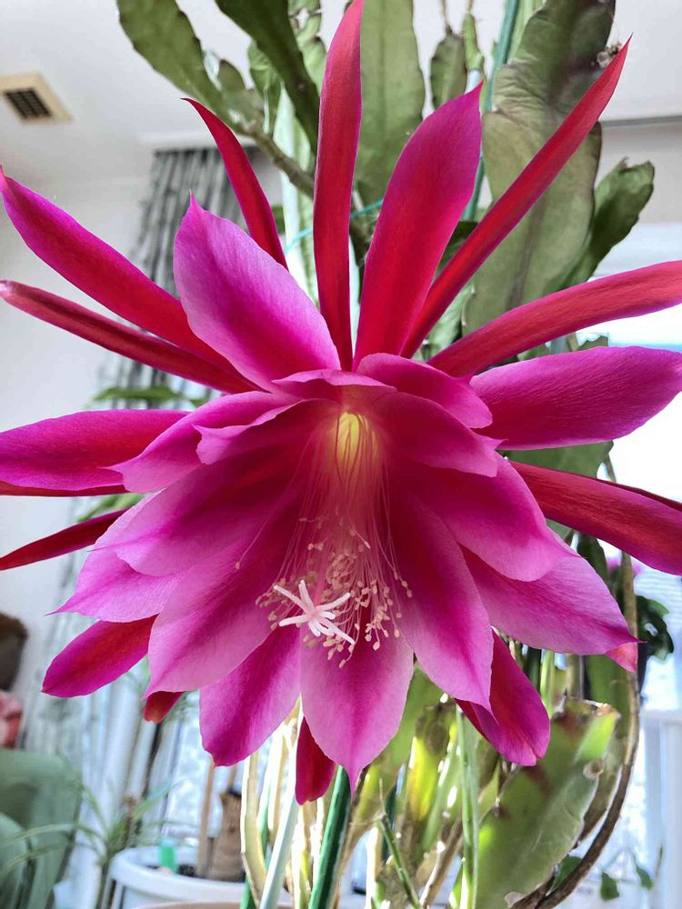 今年たくさん咲いてくれたクジャクサボテンもついに最後の開花です。