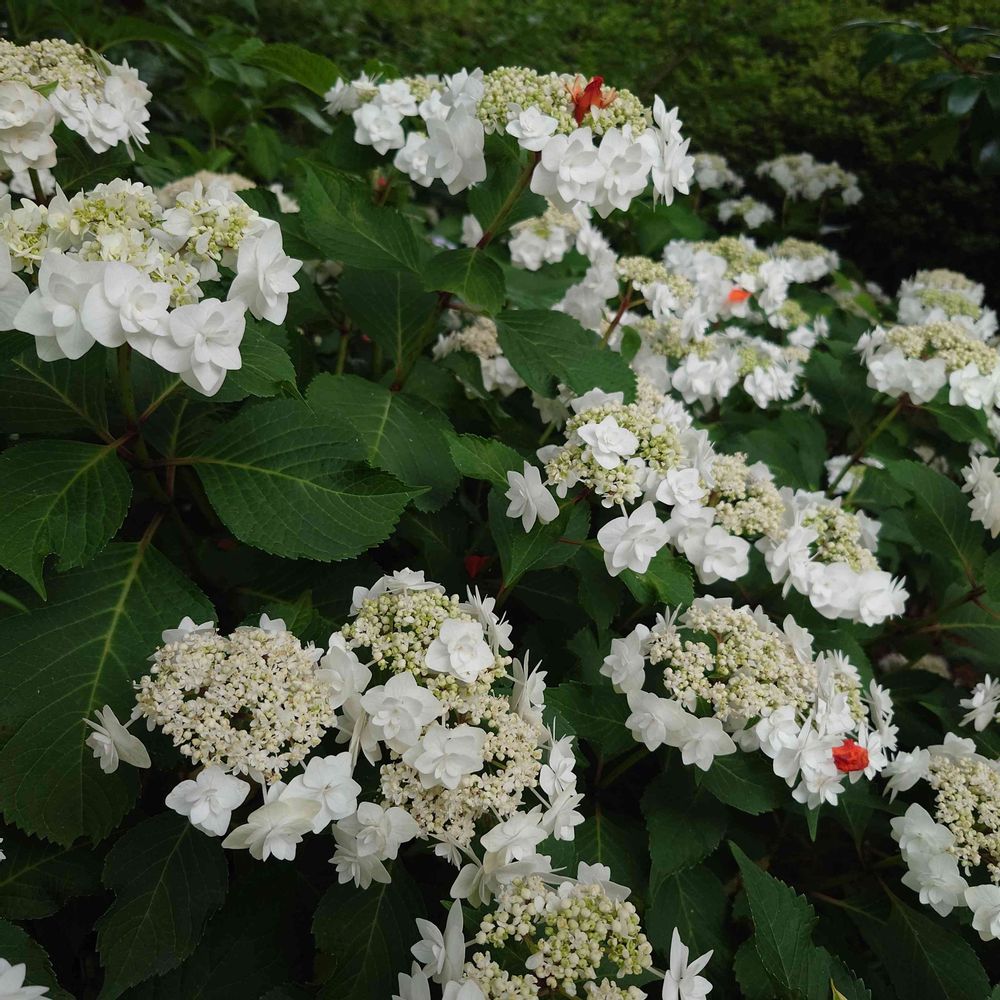 西洋アジサイとヤマアジサイの交配種なのだそう。
