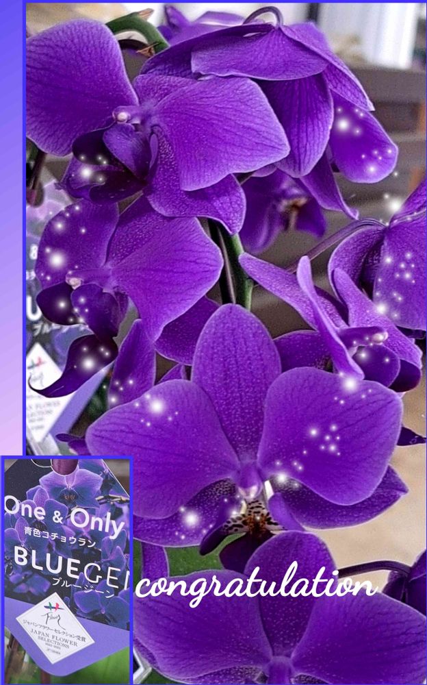 これは、15年以の研究開発を重ねた石原産業さんと、千葉大学院の共同で作られた見事な青い💙コチョウラン💖