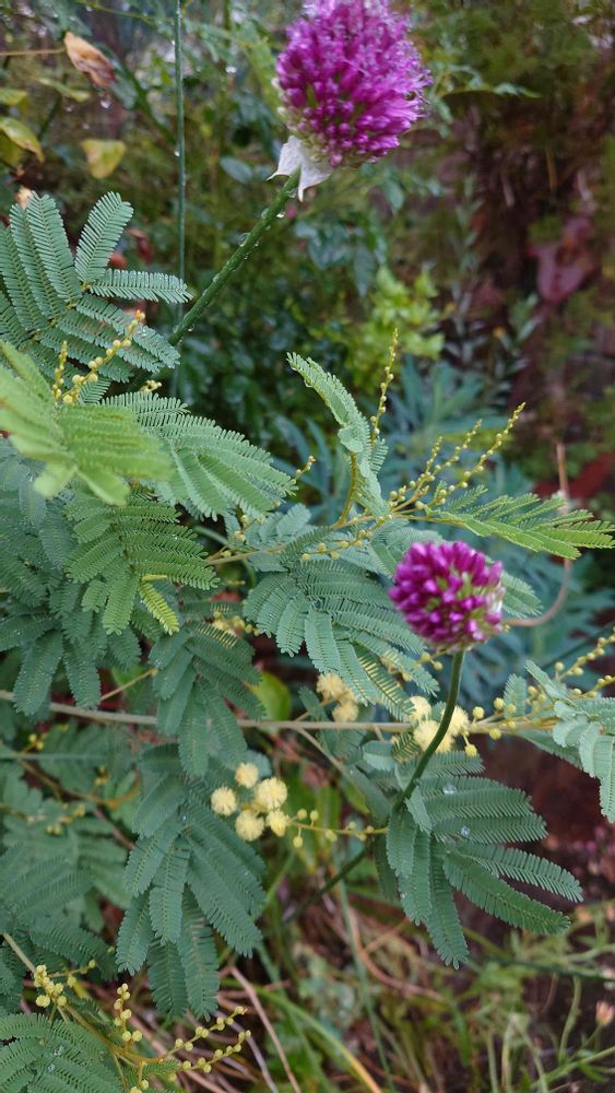 アカシア デアネイが咲き始めて、タンチョウアリウムもひょっこりと顔を出して来た〜🌕🌿🟣🌿🌕