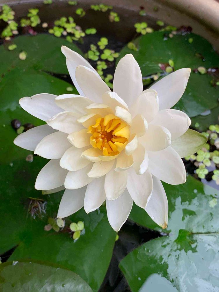 睡蓮鉢に二種類の睡蓮が植えてあり、今日咲いてるのが、この白の睡蓮です\\(^•^)//