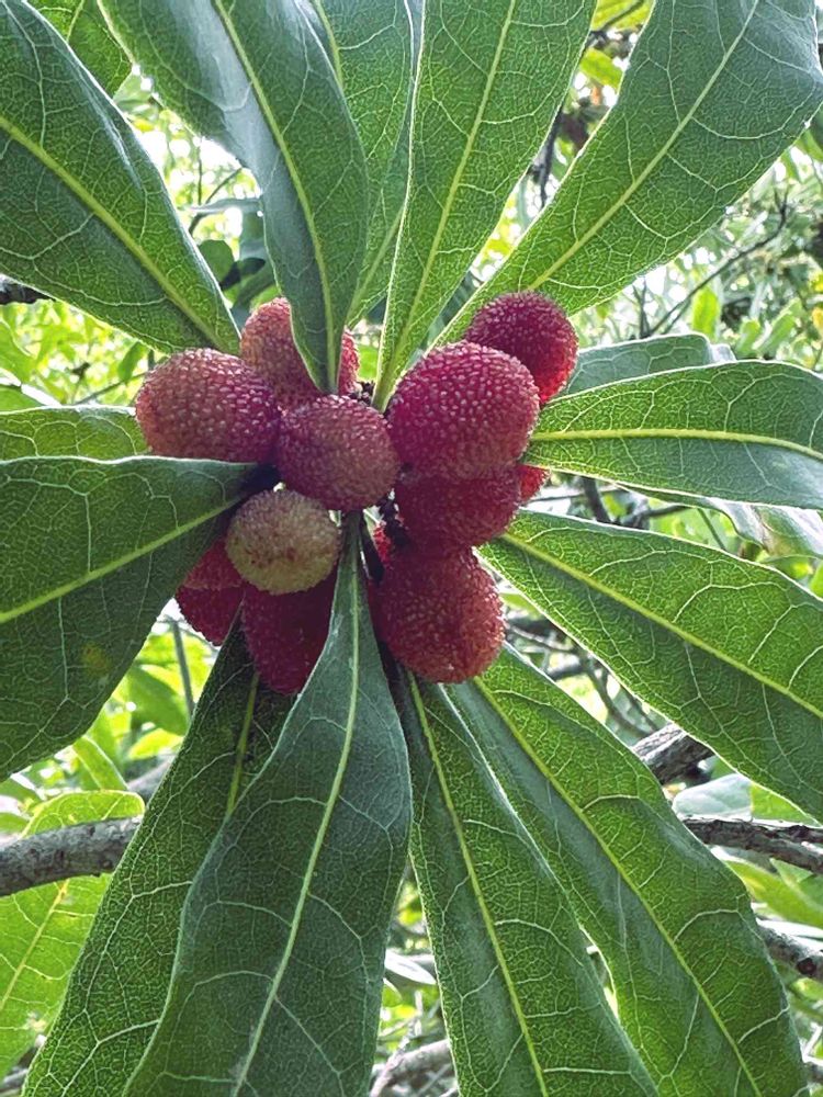 夏に実る紅い果実は生食でき、甘酸っぱい独特の風味がある ヤマモモ