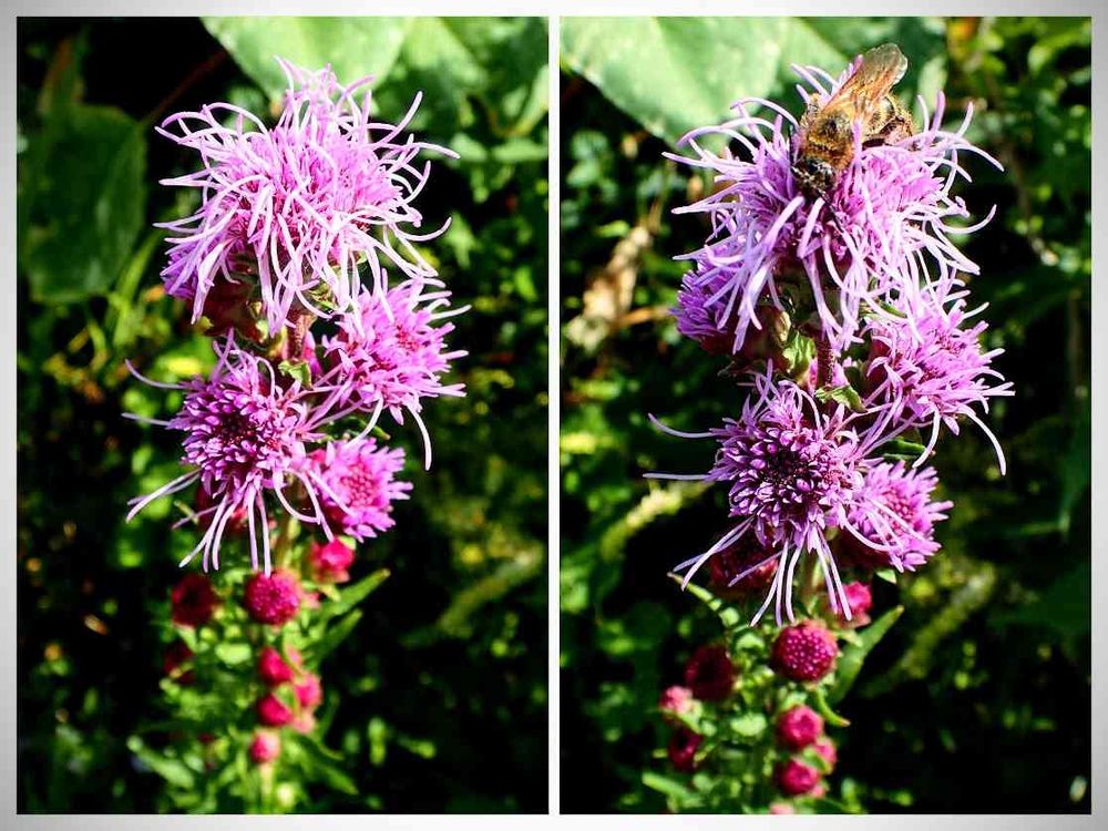 よく見かける穂咲のリアトリス・スピカータ(L. spicata)に比べて一個一個のお花が大きく、ややまばらに咲くのが特徴です。