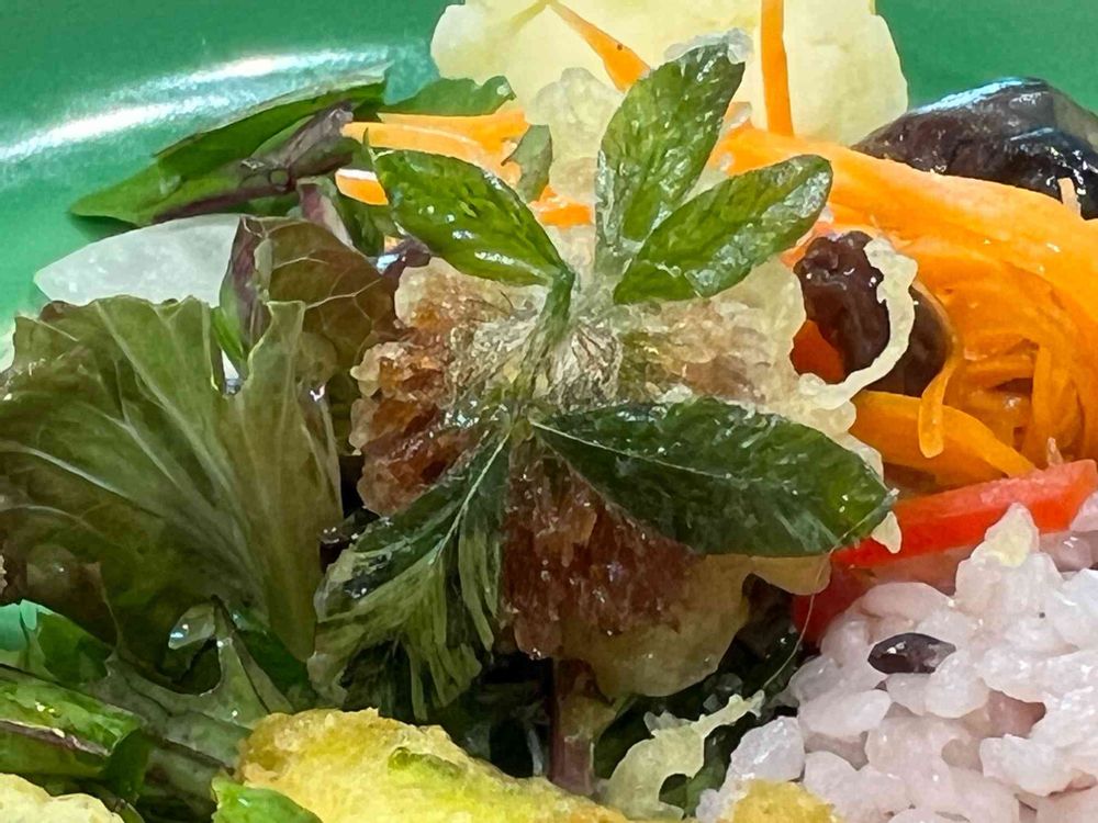 写真真ん中のフリット(天ぷら)はアカツメグサのお花です。
