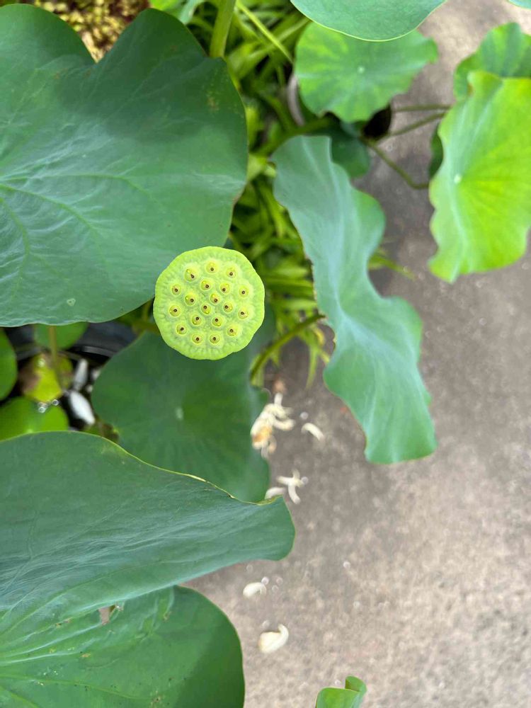 大蓮、🪷ついに花が咲き始めてから5日目に花びらが全部散ってしまい、花托があらわになりました。これからは、この種がどこまで大きくなるかですね〜😄