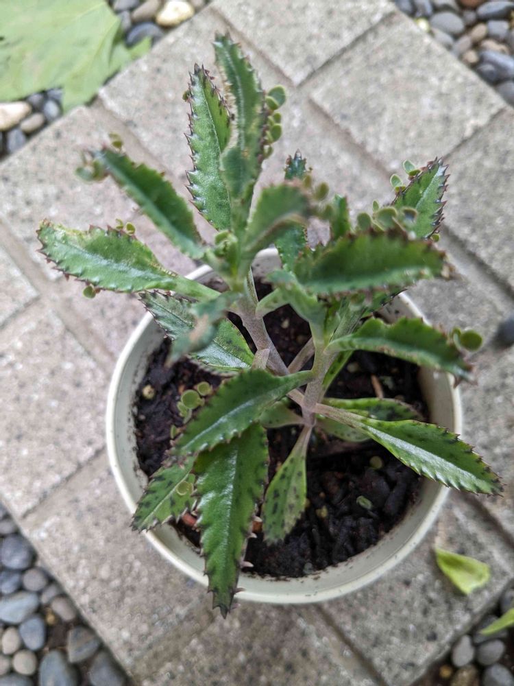 庭の棚の上でイキイキと育ってる可愛い〜多肉さん🌵不死鳥錦(カランコエ属)🌵