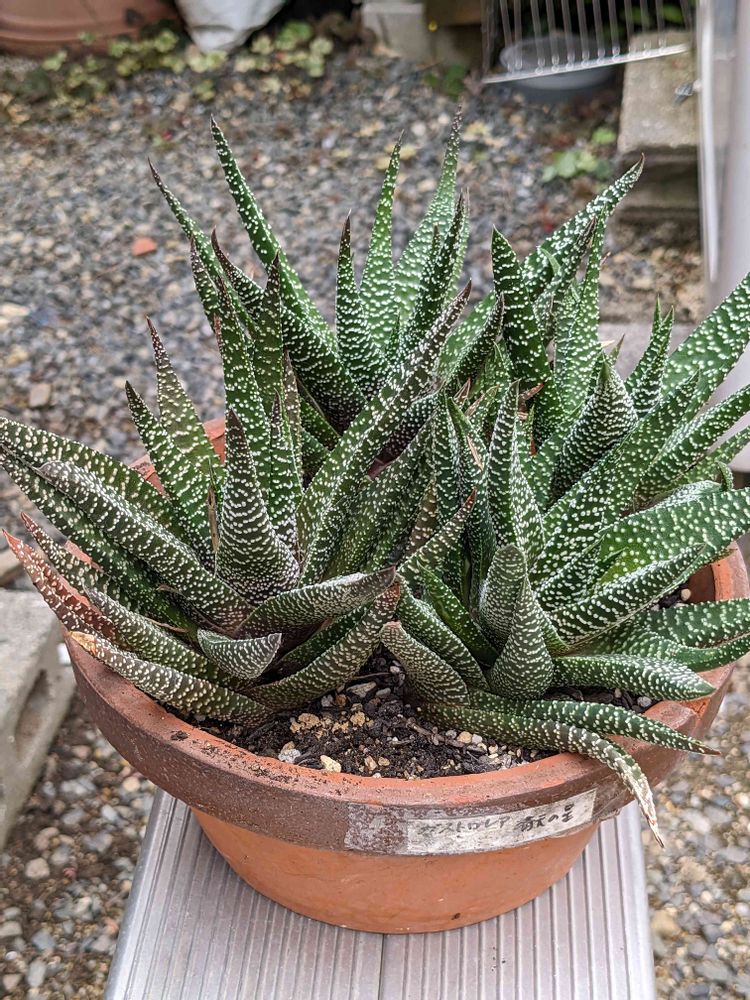 庭の棚の上でモリモリと育ってる可愛い〜多肉さん🌵満天の星(ガストロアロエ属)🌵