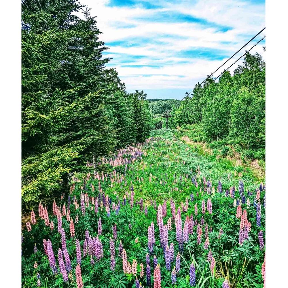 冬はスキー場のリフトが通るところで、夏の空はルピナス天国😉💚🩵🧡🩷