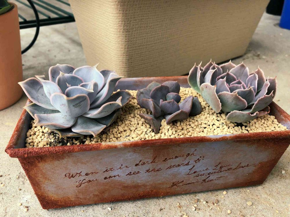 うちの紫シスターズをKamiさんのパウンド型に植えました。