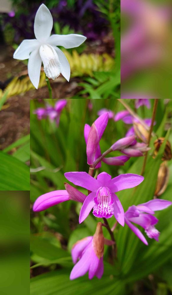 ピンク紫色と白いシランの花が綺麗です💗🤍🌿