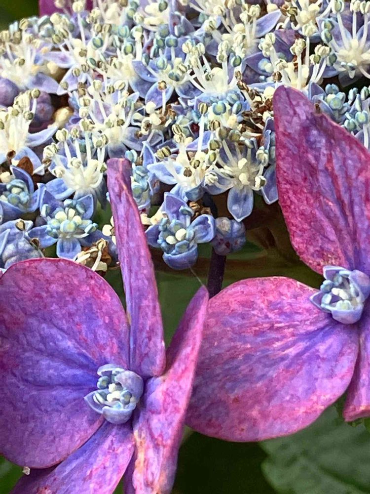 額紫陽花の真ん中も開いてます♪