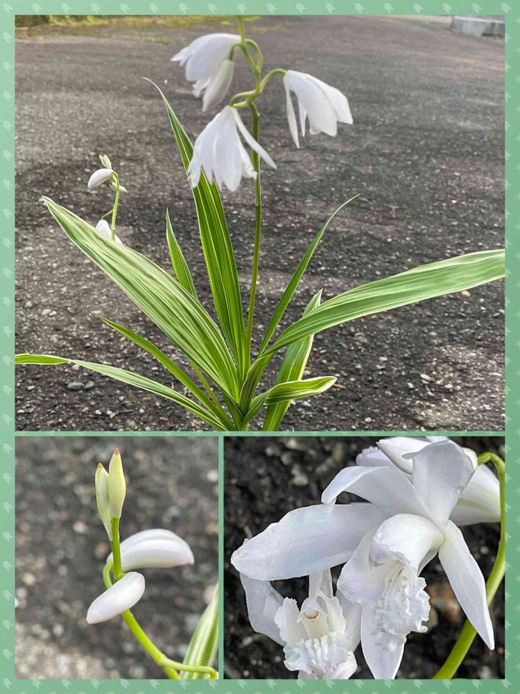 先日山形の花友さんとお会いした時に頂いた斑入りの白シランです🌿💖