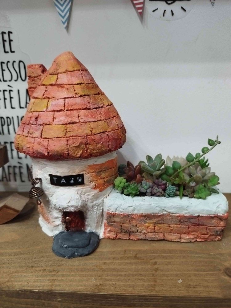 モルタルHOUSEに多肉ちゃん植えました😃お外に出さなきゃ😅ですね