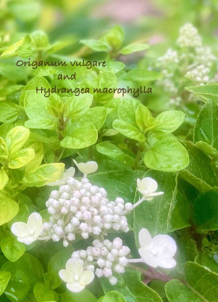 なかなかの繁殖力、オレガノマルゲリータ。そのせいかアジサイがなかなか大きくならず、しおらしく咲いてます🍀*゜