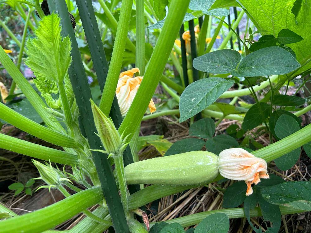 昨日の朝に受粉したズッキーニ、今朝、既に採りごろになってました。雨パワー?☔️すごい‼️