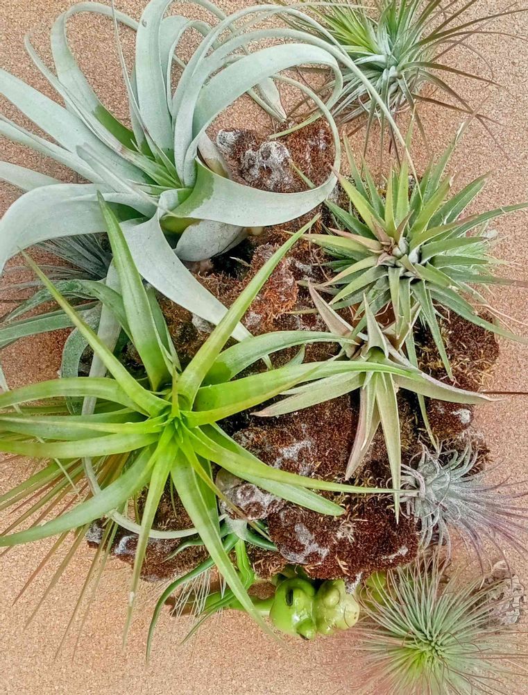 さん🐸✨この子はコルクの茶色とエアープランツの、ほんのりピンクを真似て不思議な柄に変身してます🤩凄い自然の力😲👍