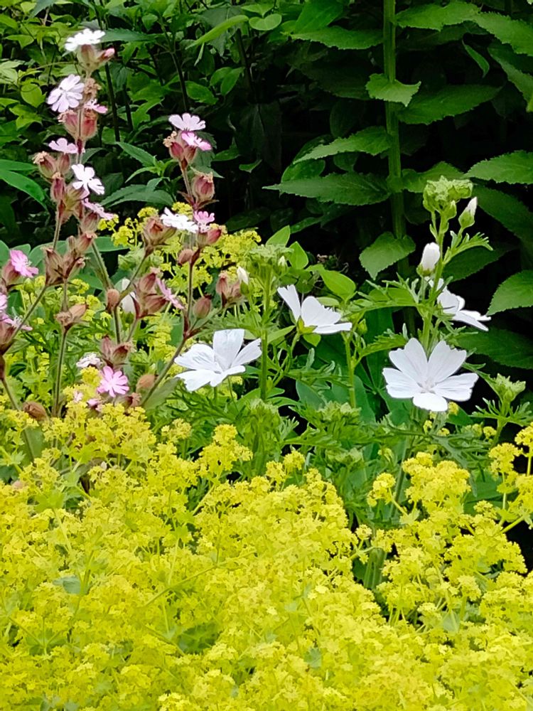 広い庭,シレネ,ジャコウアオイ(ムスクマロウ)の投稿画像