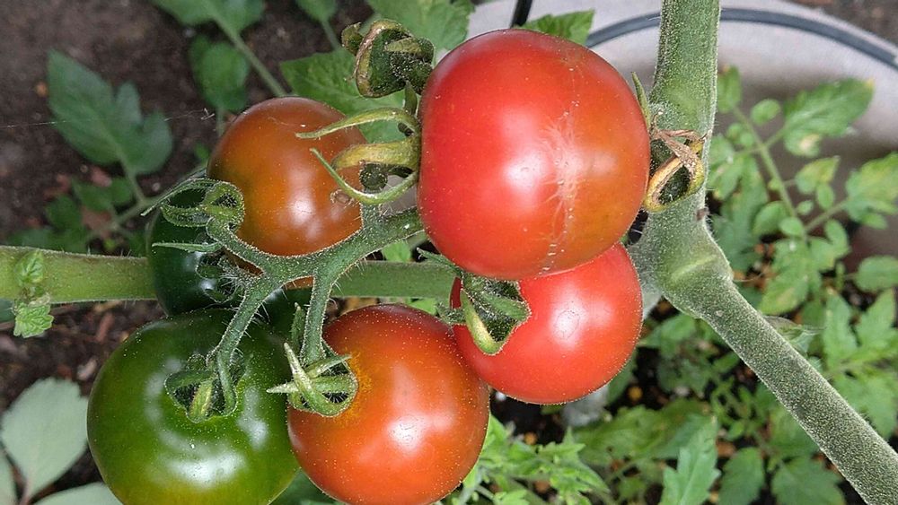 美味しそうなトマト🍅私んちも鉢でミニトマトやってまーす🍅まだやっと花が咲いたところです🙋♀️サラダに入れて食べましたか〜🍅🍅🍅