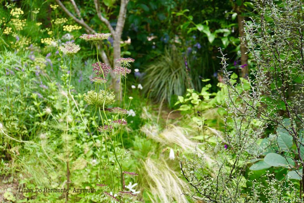 花咲くポンポンから奥の日蔭コーナーへ誘うように
