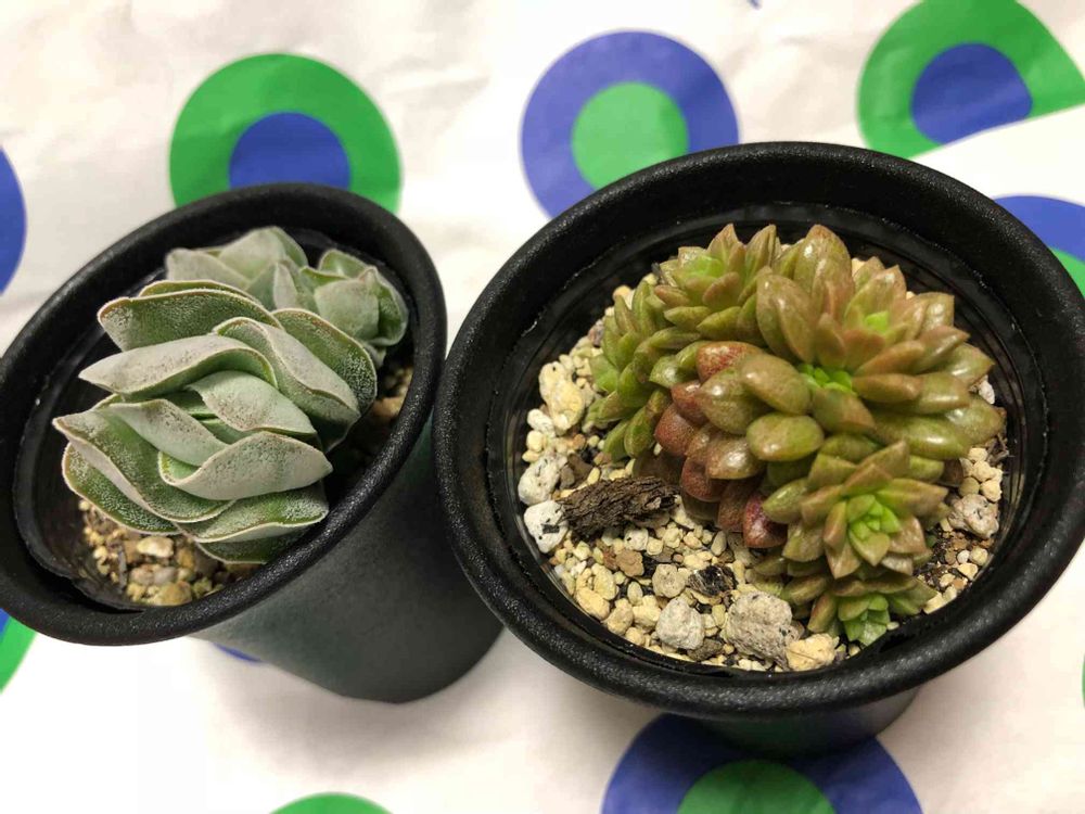 左の方は、クラッスラのアイボリーパゴダです♬