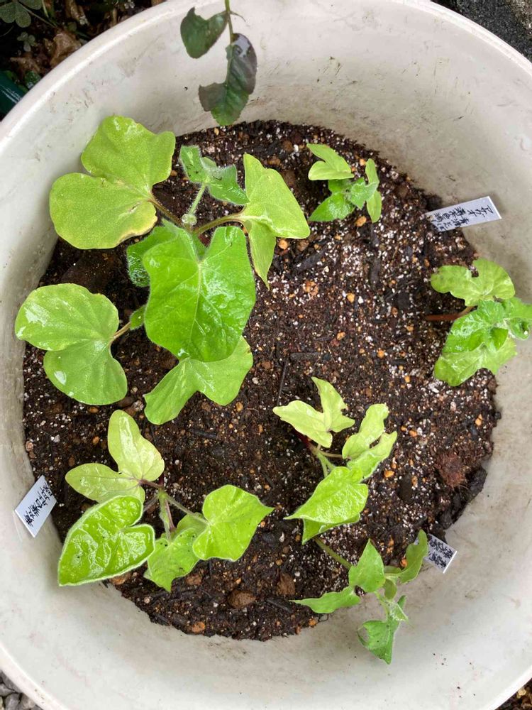 さん 鉢を増やせなくて大きな鉢にいくつも入れてみました。絡み合ってしまうでしょうし淘汰されてしまうのも出てくるかな、とは思いますが😂