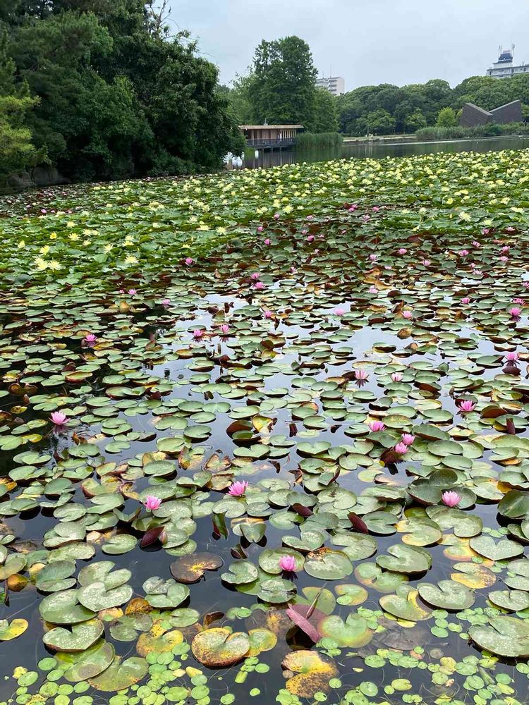 睡蓮が一面に 色も黄色💛やピンクなどが咲いてますねぇ(((^_^;)。