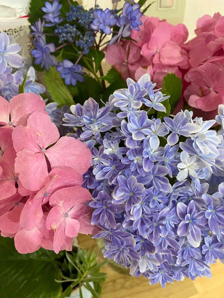 今年のアジサイ達もう終わりに近づき、カットしてお部屋の中へ。