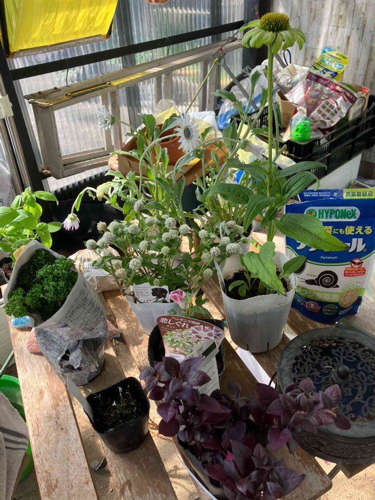 左手のハーブ類と種はおまけでついてきた
