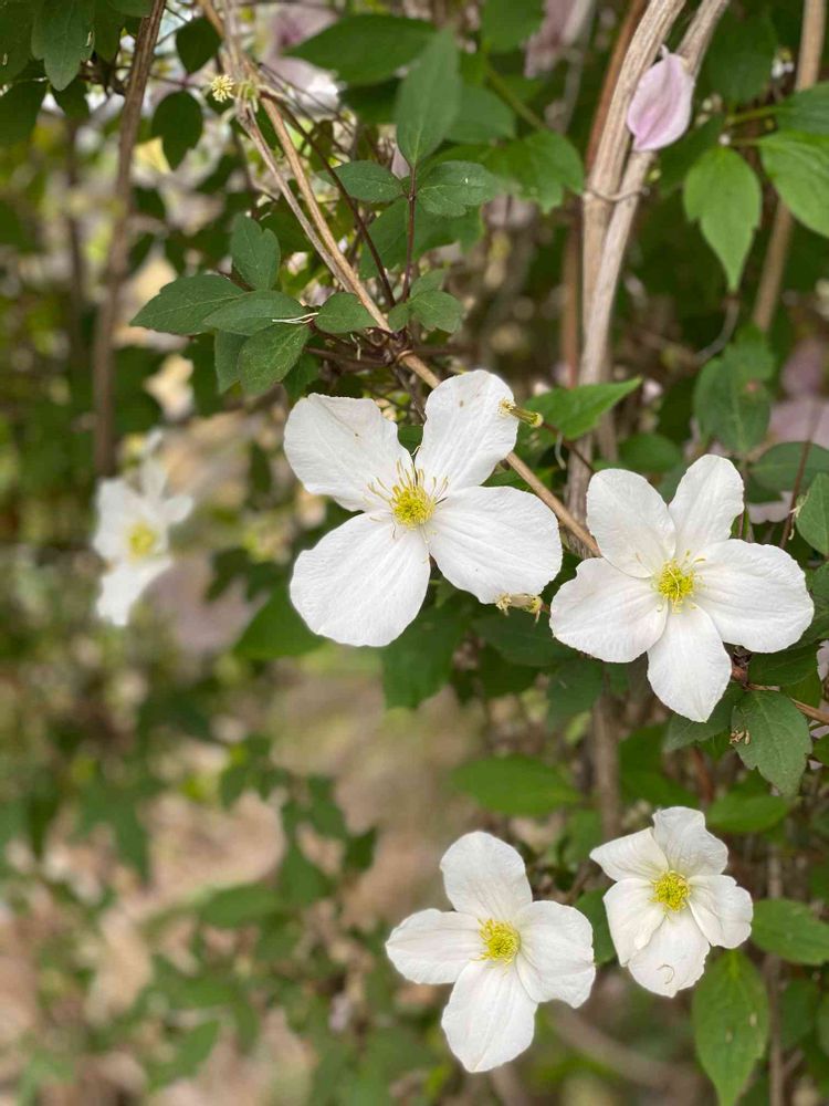 クレマチス、白で真ん中の黄色い蕊が可愛い🤍💛