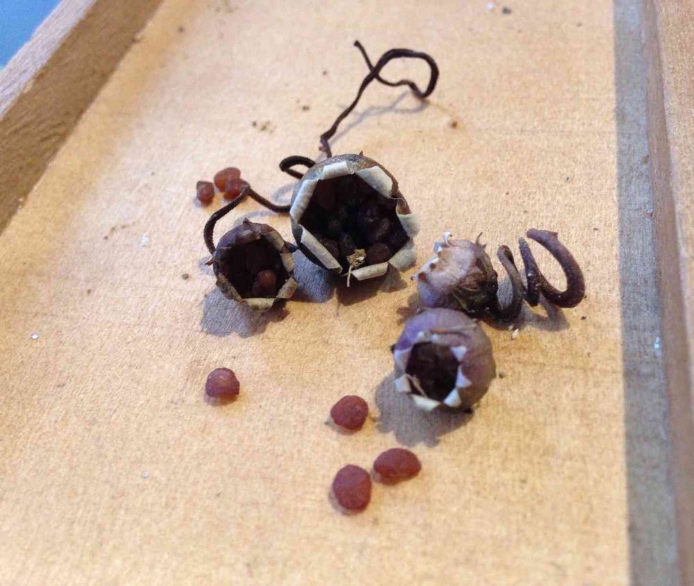 シクラメン コームの種をまきました『Cyclamen』らしくくるくる巻いた果実の茎が特徴的です