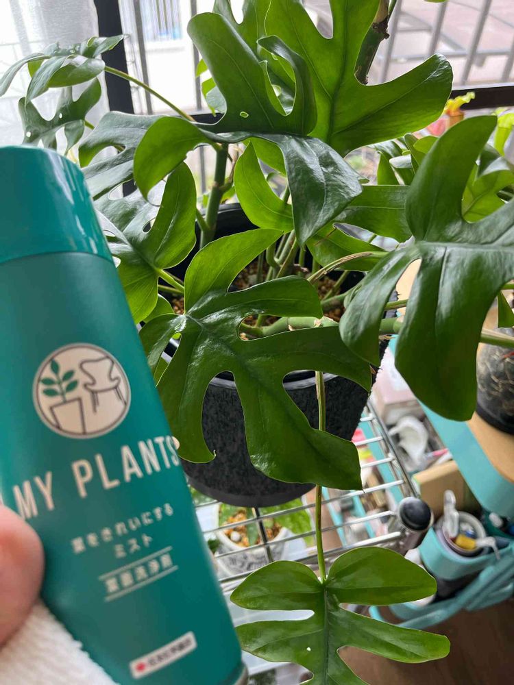 姫モンステラの葉っぱ拭いたら めちゃくちゃ綺麗になった✨