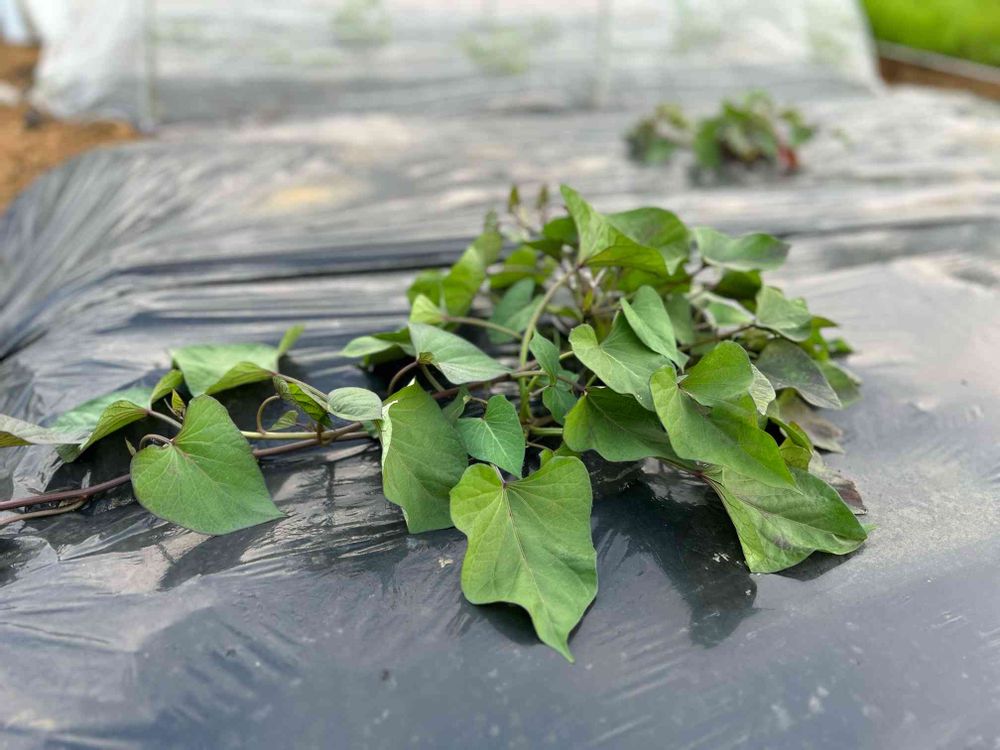 さつまいもの蔓も少しずつ伸びてきました🍠