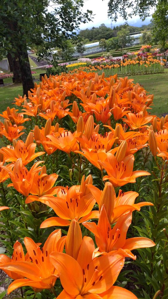 どこまでも続く鮮やかなオレンジのユリ🧡🧡🧡