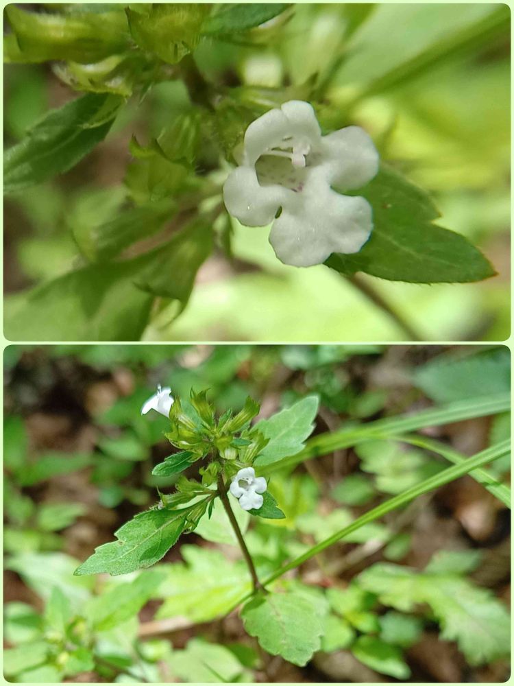 茎の先端に短い穂状花序をだし、白色で長さ8~9㎜の唇形花をまばらにつける。