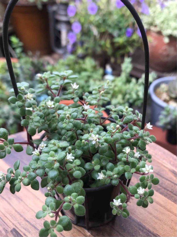 ブロウメアナ(多分)😆よく見ると産毛が生えた小さな葉っぱと濃いピンクの茎が可愛い😍🎶小さな白いお花も咲いてます…✿*:・゚…✿*:・゚