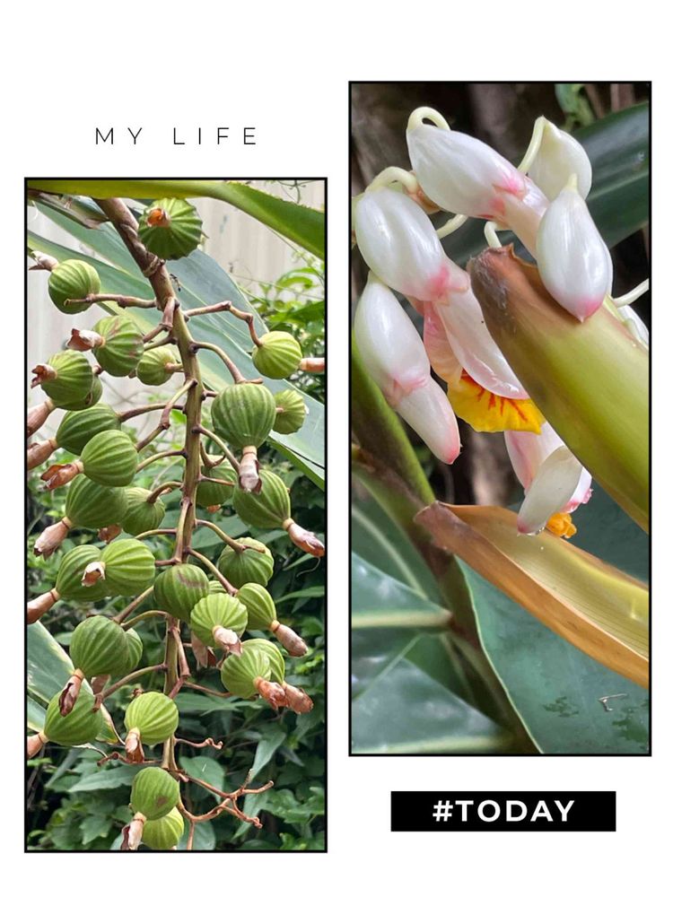 月桃の実(種)とこれから咲くぞーと頑張っている月桃の花。