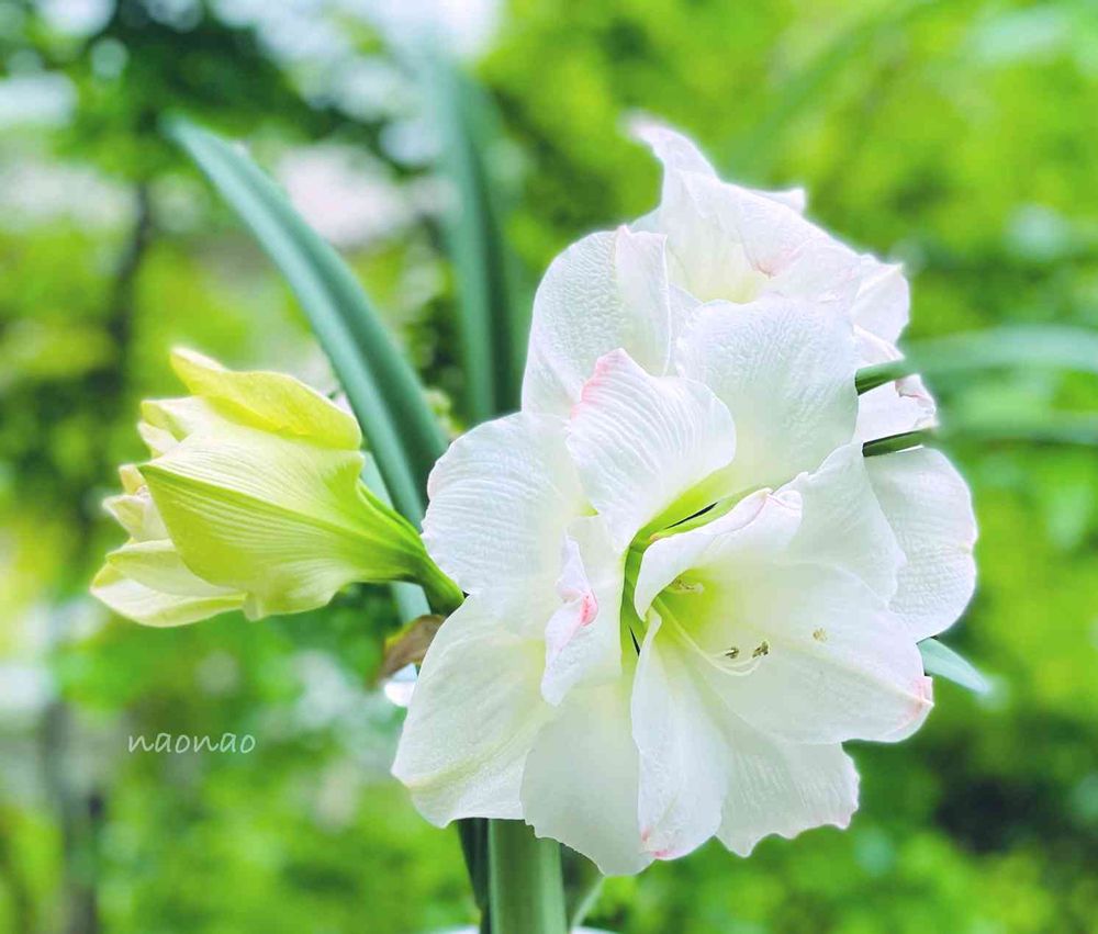 nao70*さんのアマリリス,꒰ღ˘◡˘ற꒱かわゅ~,白いお花の投稿画像