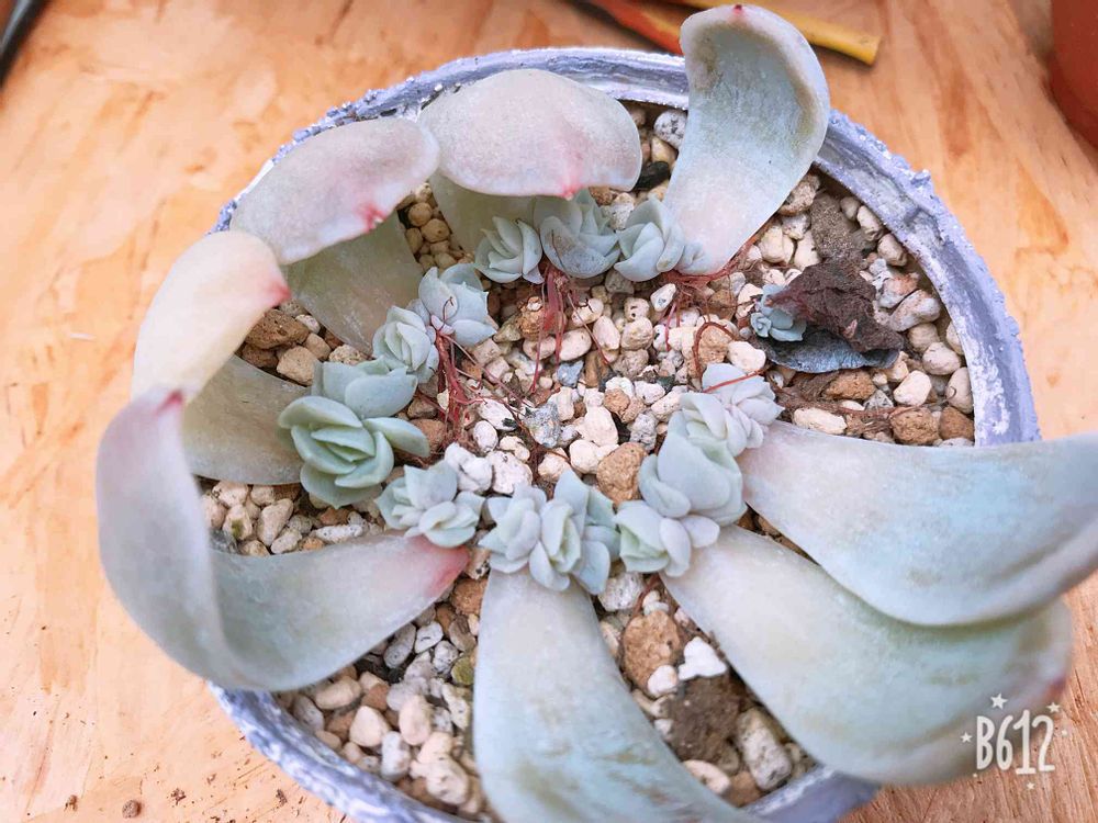 メキシカンスノーボールの葉挿しの赤ちゃんがここ数日見ないうちに大きくなってる🍀🍀