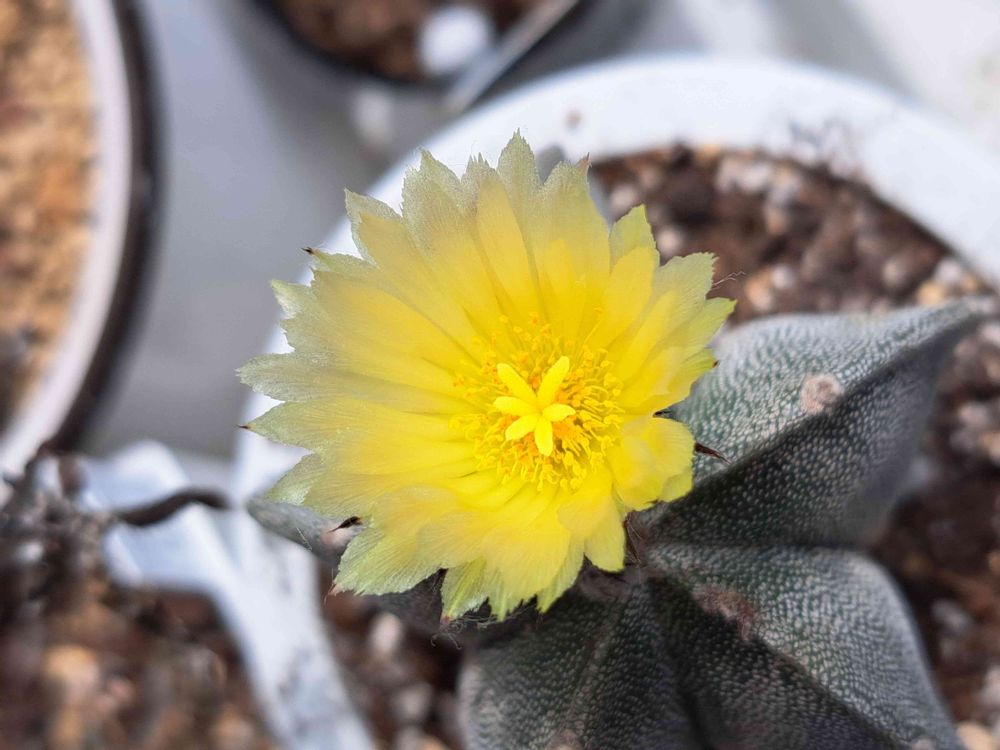 アストロフィツム「ランポー玉」が初めて咲きました(ˆ꜆ . ̫ . ).🎀