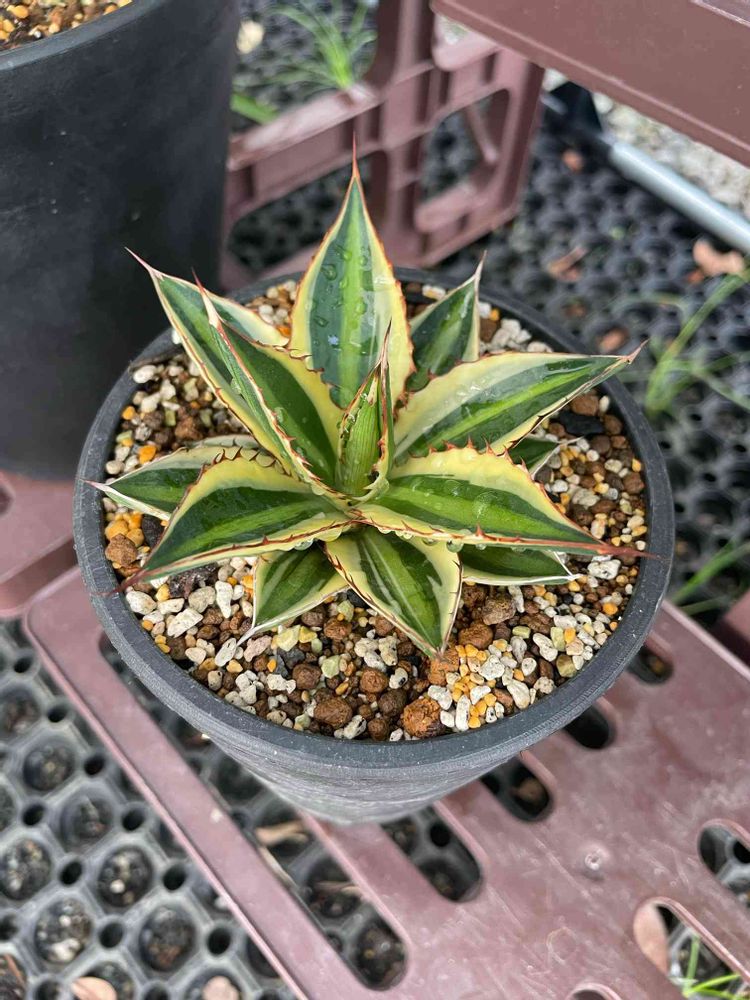 アガべ属 ロファンサ 五色万代ですね😃今日菊鉢7号に植え替えました👍