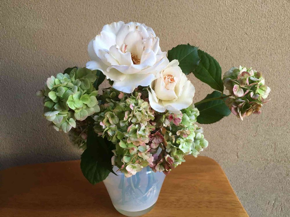 この紫陽花は、飾っておいても自然にドライフラワー庭のなりました。