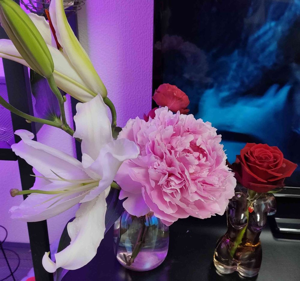 行きつけの花屋さんではお気に入りの芍薬ちゃん(サラベルナール)、家の近くの花屋さんではオリエンタルユリさんを購入しました💕