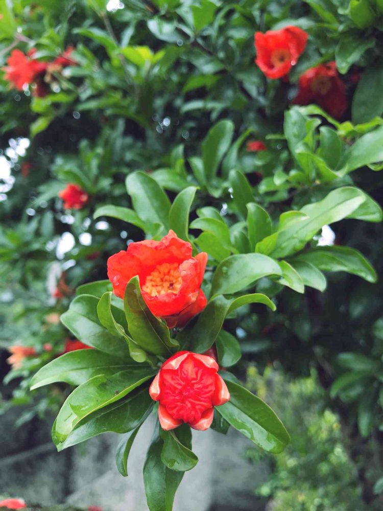 小さな庭,ザクロの花,雨に輝くの投稿画像