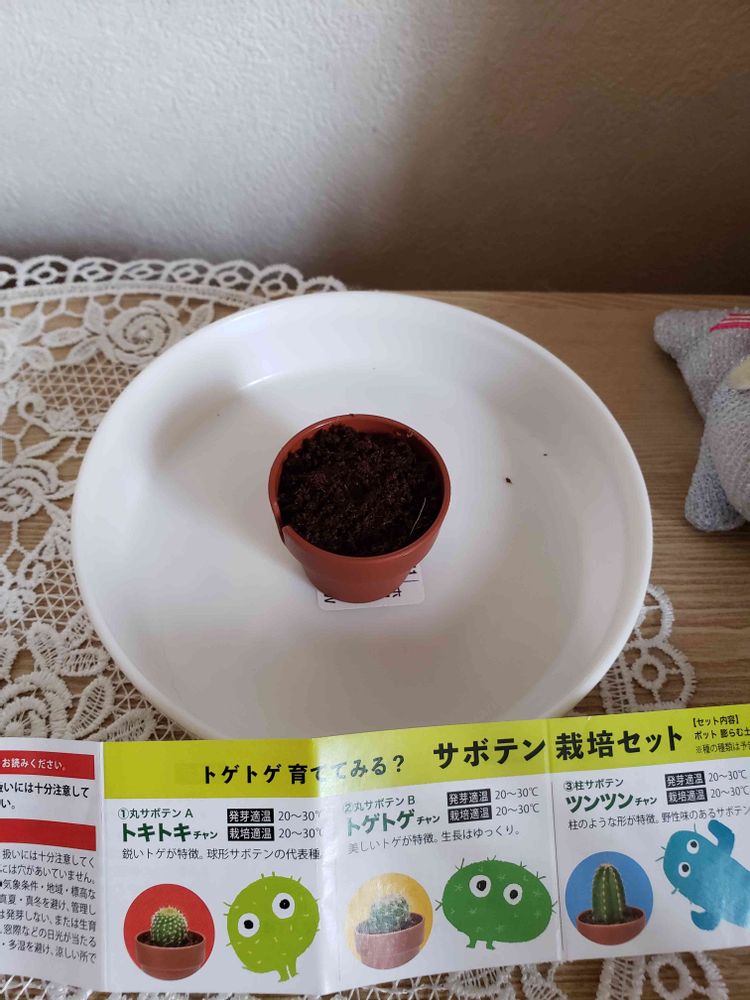 投稿遅くなりましたが、6月22日にガチャガチャのサボテン🌵の種を植えました。種は丸サボテンAでした🌵☀️