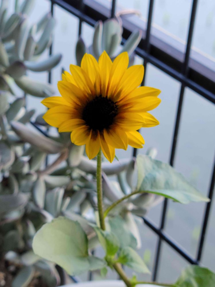 見切り品で買った、ヒマワリ サンビリーバブル ブラウンアイガール🌻咲きました🎵